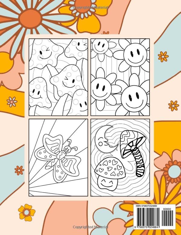 Groovy Preppy Coloring Book: 55 vintage & retro pages – Funky & Trippy – VSCO Girl – Cute & kawaii Objects For Teens (Aesthetic Girl Coloring Books)